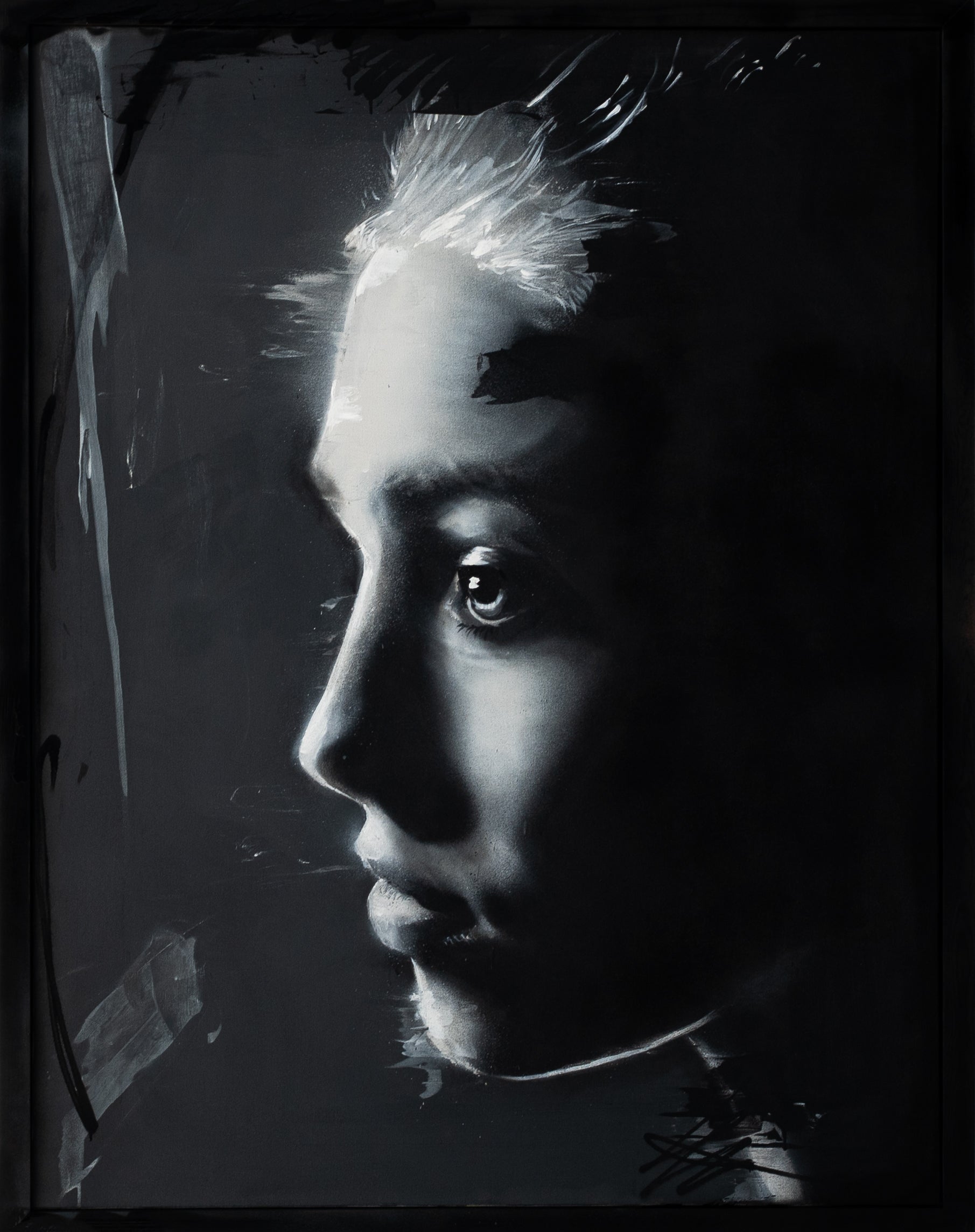 Sprey boya, pigment akrilikler ve özel doku katmanları; tuval kumaşı üzerine uygulanmıştır.